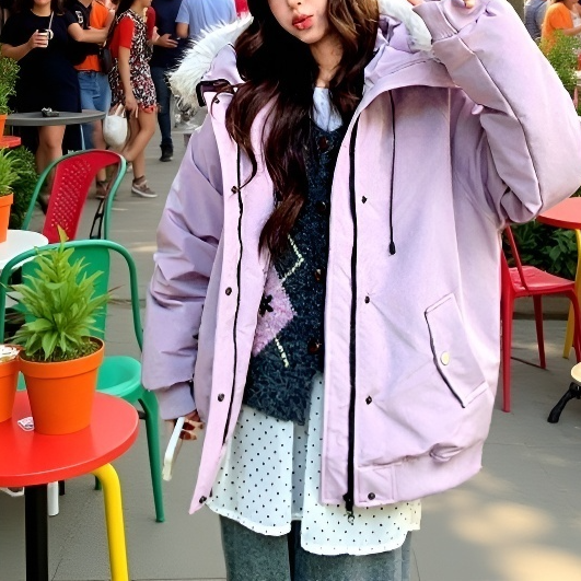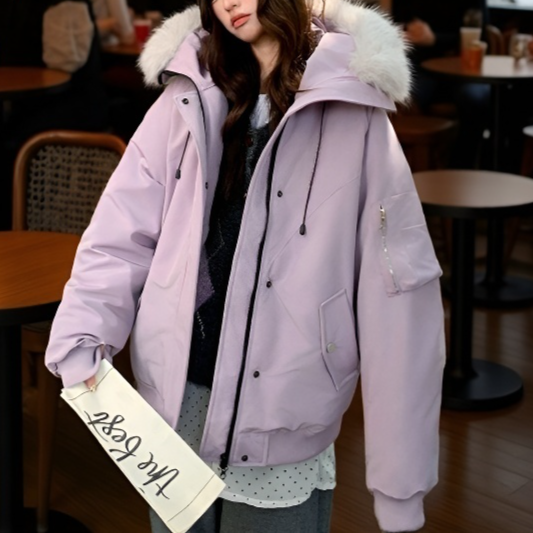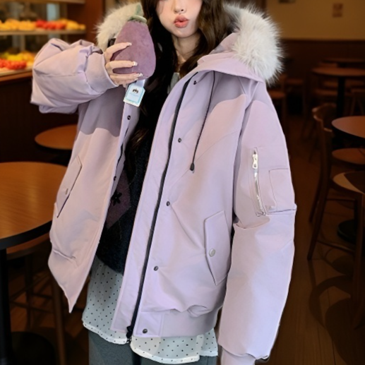 ● 大きめのファー襟が高級感を演出し、寒い季節でも首元までしっかり暖かく守ります。